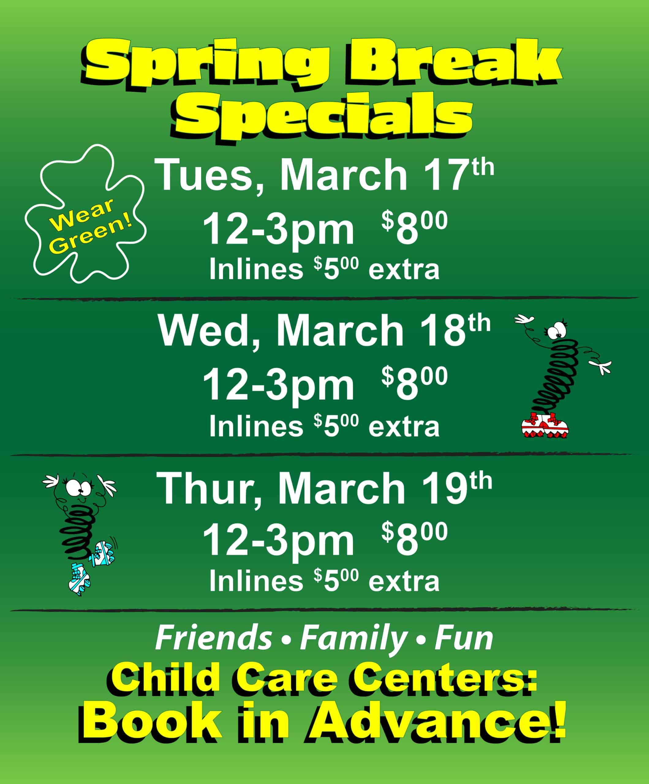Click here for special times and pricing.